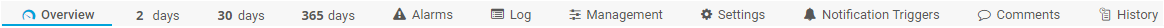 Probe, group, device, and sensor pages have tabs that you can use to navigate between the different options. For example, you can view your network's status, view monitoring results, or change settings.