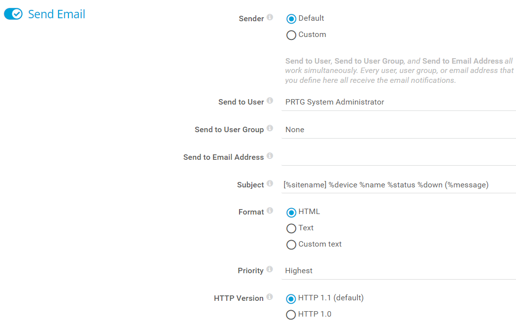 i_round_bluePRTG only uses the subject for the notification methods Send Email and Send Amazon Simple Notification Service Message.