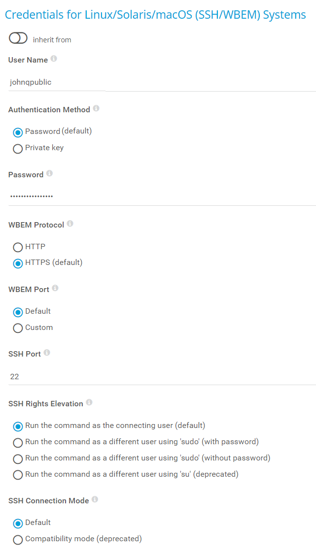 Credentials for Linux/Solaris/macOS (SSH/WBEM) Systems