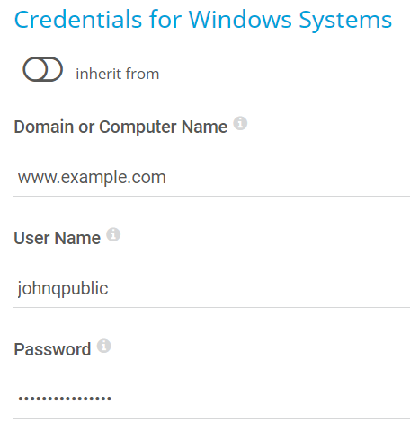 Enter the domain or computer name of the user account with which you want to access the Windows system. PRTG uses this account for Windows Management Instrumentation (WMI) sensors and other Windows sensors.